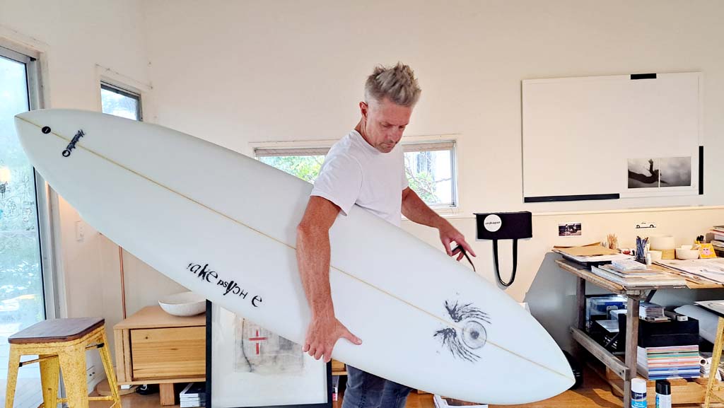 It was actually seeing the decals Richard Harvey had done up for his shaping workshop that got me thinking. And then working super quick. I asked him how he made his decals and the process of getting them onto the board. I won’t give away his technique. And those who do this stuff regularly would already know. But for me it was an epic add on to learning to shape my own boards. Not only can I shape the thing but I can also create the graphics and aesthetic to it as well.